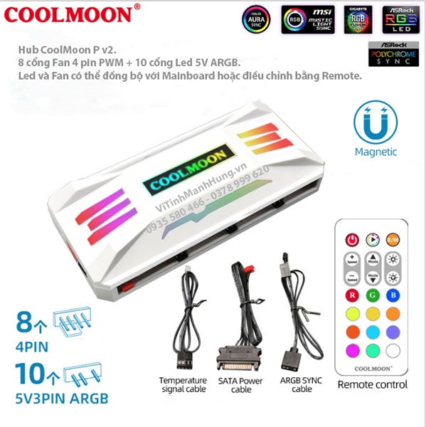 HUB + REMOTE COOLMOON RGB SYNC Main (Trắng / Đen)
